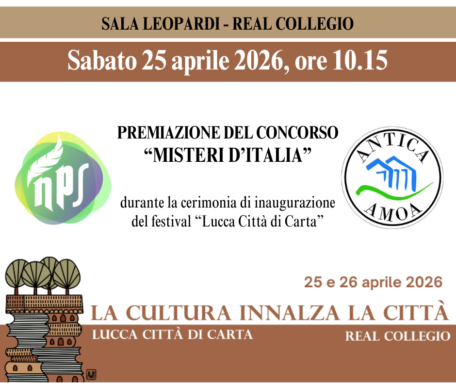 23. La proclamazione dei vincitori avverrà sabato 25 aprile 2026, alle 10.15, al Real Collegio di Lucca, durante il prestigioso festival letterario "Lucca Città di Carta". Tutti i partecipanti, non soltanto i finalisti, sono invitati a partecipare all'evento.