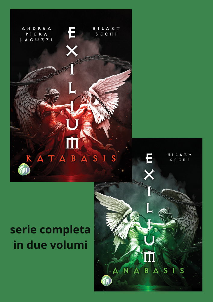 Saga completa di Exilium, composta dai volumi Katabasis e Anabasis, scritti da Andrea Piera Laguzzi e Hilary Sechi.